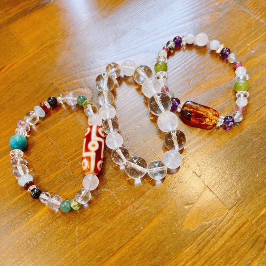 数珠の感想私は人や環境のいろいろな気をもらいやすいので、水晶の数珠をつけていて、色が消えたり、割れたりしたのを目の当たりにして、守ってもらってるなぁーとすごく感じます!いい時はキラキラしているし、悪いときはくもります。バロメーターみたいで、大切なお守りみたいです❤️琥珀アメジストペリドットアクアマリンスターサファイア等気のエネルギーを浄化し運気の流れを整えA様が過ごしやすくお仕事に集中できるようなチャクラへーーーーーーーーーーーーーーーーーーLINEにてA様からお声をいたただきました。日々多忙な日を過ごされるAさまがすこしでも日常で癒されやりたいことや好きなことに邁進できるよう組んでおります。A様のお人がらがとても あたたかいのでエネルギーを受けやすかったりしますがそれも視点を変えるとたくさんのかたを生きやすくしているということですね。歩くパワースポットなA様が遊石にてすこしでもパワー充電してくださればと思い元気溢れるお店にしていきます!